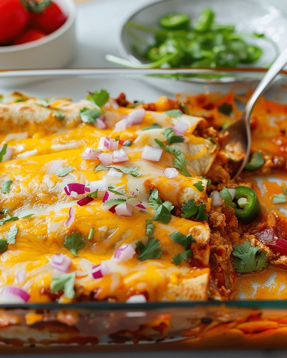 It’s a lighter version of classic enchiladas, using lean ground turkey without sacrificing flavor.