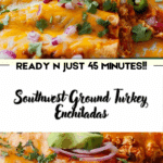 These Southwest Ground Turkey Enchiladas blend spice, beans, and lean protein into a comforting yet lighter dinner that’s quick to assemble and easy to customize. Whether you’re cooking for family, prepping ahead, or serving leftovers, they deliver satisfying flavor with flexibility. Let me know if you’d like a printable version, nutritional breakdown, or suggestions for side dishes!