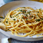 A simple and flavorful spaghetti dish with garlic, red chilli, and fresh herbs. Perfect for a quick and satisfying vegetarian meal.