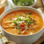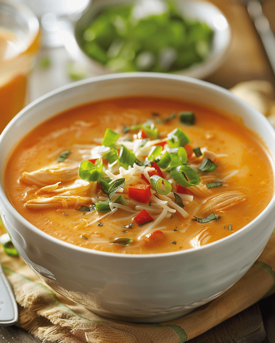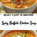 A warm and comforting spicy buffalo chicken soup made with tender chicken, vegetables, and bold buffalo sauce flavors, perfect for cozy dinners or game-day meals.
