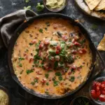 A rich and spicy queso dip loaded with ground beef, chorizo, melty cheeses, and bold Tex-Mex flavors—perfect for game day or party appetizers.