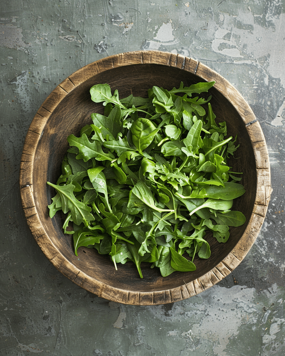 A fresh and vibrant spinach and arugula salad tossed with a light vinaigrette, perfect as a healthy side or light meal.