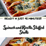 This Spinach and Ricotta Stuffed Shells recipe offers the perfect blend of creamy cheese, vibrant spinach, comforting pasta and tangy marinara — all baked to bubbly perfection. It’s ideal for a cozy dinner, a pot‑luck dish or prepping ahead for a hassle‑free meal. Whether you stick with the original vegetarian version or customize it to suit your taste, it’s sure to become a favorite.