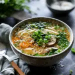 This recipe delivers big flavor from simple plant-based ingredients. The kombu and dried mushrooms create a deeply umami broth, while the ginger-scallion miso blend adds freshness and body. It feels nourishing and restaurant-worthy, yet it is made from approachable steps.