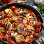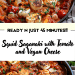 Squid saganaki with tomato and vegan cheese is a simple, flavor-packed dish that feels both comforting and special. With its savory tomato base, tender squid, fragrant basil, and creamy dairy-free cheese, it is the kind of recipe that comes together quickly but tastes like something far more elaborate. Whether you serve it as a meze or the star of the meal, it is a dish worth making again and again.