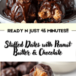 Sweet and satisfying stuffed dates filled with creamy peanut butter and topped with rich chocolate. A quick no-bake treat perfect for snacking or dessert.
