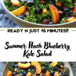 This salad is packed with summer flavor in every bite. The peaches add juicy sweetness, the blueberries bring a pop of freshness, and the kale gives it a hearty base that holds up beautifully.
