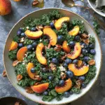 A refreshing summer kale salad tossed with juicy peaches, sweet blueberries, and a light, flavorful dressing. Perfect as a vibrant side or a wholesome light meal.