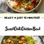 This Sweet Chili Chicken Bowl is a flavorful and easy weeknight dinner featuring tender chicken thighs cooked in a homemade sweet chili sauce, served with rice and sautéed vegetables.