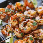 Sweet Chili Shrimp Skewers are a quick and flavorful appetizer or main dish featuring juicy shrimp marinated in a sweet, tangy, and mildly spicy Thai-inspired sauce, then grilled to perfection.