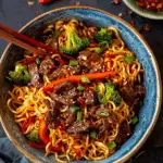 This crispy chilli beef noodles recipe is a vibrant and fast-cooking dish that gives you the taste of a takeaway with home-kitchen ease. With thinly sliced beef, fresh noodles and crunchy veg, all coated in a bright, sticky chilli lime sauce, it hits all the right notes for flavour and texture. Perfect for a weeknight indulgence, and flexible enough to adapt to your dietary preferences. Enjoy!