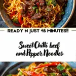 These crispy chilli beef noodles combine crunchy strips of beef with a spicy, sticky sauce and stir-fried vegetables, all tossed with noodles for a satisfying and flavorful meal.