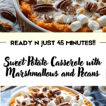 Sweet Potato Casserole with Marshmallows and Pecans is a timeless comfort dish that brings together creamy mashed sweet potatoes, crunchy pecans, and fluffy toasted marshmallows. Its warm spices and rich flavors make it perfect for holidays, family dinners, or any time you want a cozy and satisfying side dish. With simple ingredients and easy preparation, this casserole is sure to become a favorite at your table.