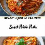 A creamy and flavorful sweet potato pasta that’s both comforting and nutritious. Blended roasted sweet potatoes form a silky sauce with garlic, cream, and Parmesan, perfect for coating your favorite pasta shape.