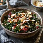 Swiss chard with almonds and raisins is a wonderfully simple dish that proves a few basic ingredients can create something truly flavorful. With tender greens, sweet raisins, crunchy almonds, and aromatic leek and garlic, it offers a delicious balance of textures and tastes. Whether served as a side or enjoyed as a light main, this recipe is an easy way to bring more color and character to the table.