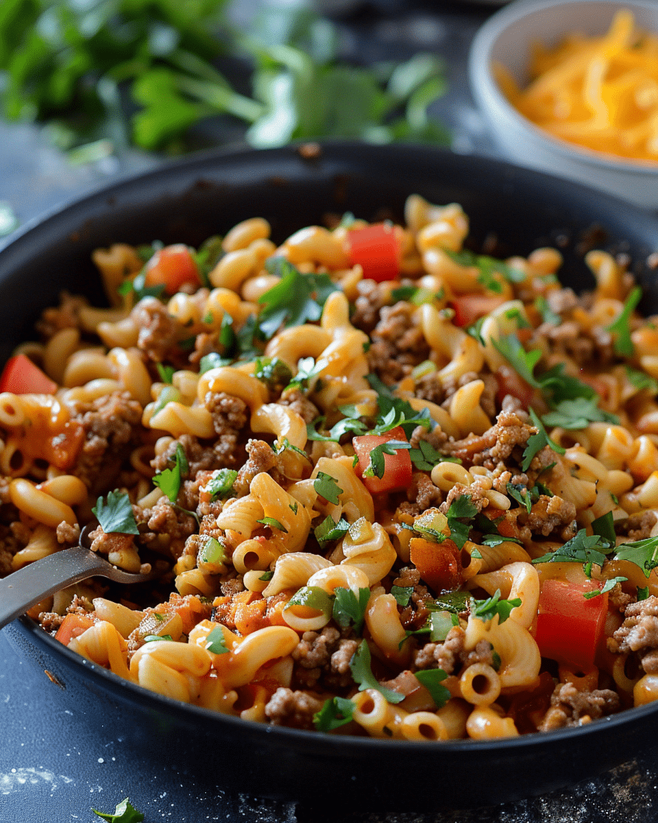 This homemade Taco Hamburger Helper is a comforting, flavorful one‑pan meal that puts a fun taco twist on a classic favorite. With melty cheese, seasoned ground beef, pasta, and a crunchy chip topping, it’s a weeknight dinner the whole family will love—and it comes together in about 30 minutes.