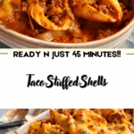 Taco Stuffed Shells are a delicious fusion of Italian pasta and Mexican flavors, combining jumbo pasta shells filled with seasoned ground beef, salsa, and cheese, then baked to perfection. This easy weeknight dinner is family-friendly and packed with bold, comforting flavors.