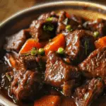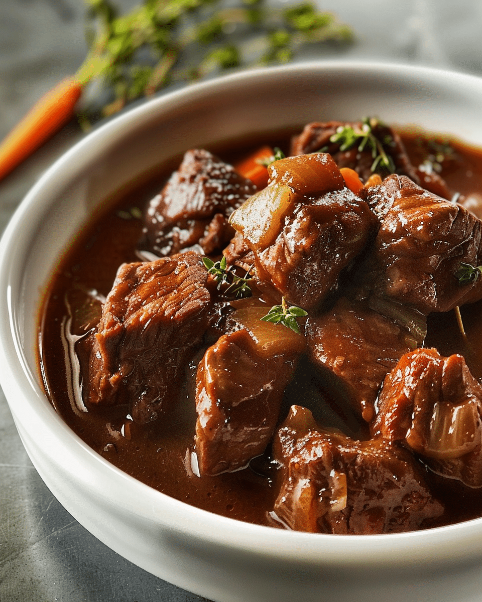 Tender beef chunks simmered to perfection in a rich, savory gravy — a hearty and satisfying dish perfect for a cozy dinner.