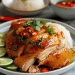 Thai Chicken (Gai Yang) brings the vibrant, smoky flavours of Southeast Asian street food into your own kitchen. With a bold marinade and simple grilling technique, it’s perfect for weeknight dinners or weekend barbecues. Once you’ve tried this juicy, aromatic chicken with rice and dipping sauce, it’s sure to become a favorite in your recipe rotation.