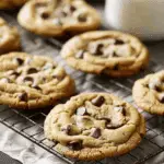 These soft chocolate chip cookies are thick, chewy, and packed with gooey chocolate chips. Made with simple ingredients and no chilling required, they come together quickly for a classic, bakery-style cookie at home.