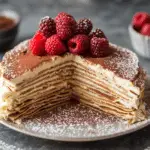 This dessert is a beautiful twist on traditional tiramisu and classic layer cake. Instead of sponge cake or ladyfingers, it uses soft homemade crepes that create thin, delicate layers for a light yet indulgent texture.