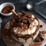 You can top it with shaved chocolate, crushed biscuits, cocoa nibs, or simply leave it with cocoa powder only.