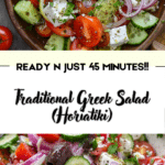 Traditional Greek Salad is proof that simple ingredients can create something truly memorable. Fresh, crisp, salty, and satisfying, this classic Mediterranean dish is easy enough for everyday meals yet beautiful enough to serve to guests. Whether you enjoy it on a warm summer day or as part of a larger feast, Horiatiki is a timeless recipe that brings fresh flavor to the table every time.