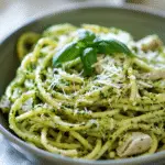 A flavorful and easy tuna pesto pasta made with whole grain spaghetti, garlic, and Parmesan, tossed in a rich pesto sauce. Perfect for a quick and satisfying meal.
