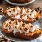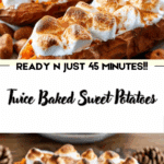 Twice Baked Sweet Potatoes are a delicious and festive dish featuring creamy sweet potato filling, warm spices, and a gooey marshmallow topping. Ideal for holiday gatherings or a comforting weeknight meal.