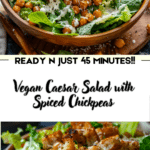 This Vegan Caesar Salad with Spiced Chickpeas is a plant-based twist on the classic Caesar, featuring crunchy romaine lettuce, crispy roasted chickpeas, and a creamy cashew-based Caesar dressing. It’s hearty, flavorful, and perfect as a main or side dish.