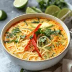 A comforting vegan coconut curry noodle soup packed with aromatic spices, tender noodles, and a rich, creamy broth. Perfect for a cozy, flavorful meal.