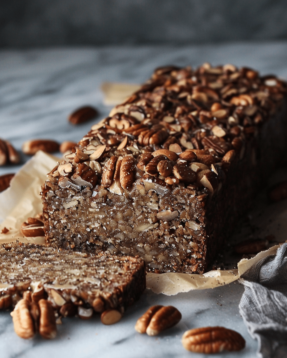 A hearty and protein-packed vegan nut roast made with mixed nuts, seeds, and vegetables, perfect as a comforting main dish.