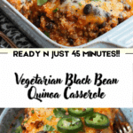 This Vegetarian Black Bean Quinoa Casserole is an excellent choice for a wholesome, comforting, and low‑fuss meal. With minimal prep, mostly pantry ingredients, and the flexibility to customize according to your taste or dietary needs, it’s both practical and delicious. Perfect for weeknight dinners, meal‑prep, or feeding a crowd — you get satisfying texture, plant‑based nutrition, and warm baked flavor all in one dish. Enjoy!