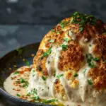 Whole Roasted Cauliflower with Tahini Sauce is a dish that turns simple ingredients into something truly special. With its golden roasted exterior, creamy sauce, and fresh toppings, it delivers layers of flavor and texture that feel both comforting and elegant. Whether served as a vegetarian main course or a striking side dish, this recipe is an easy way to make cauliflower the star of your table.