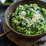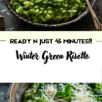 A vibrant and creamy Winter Green Risotto made with arborio rice, fresh spinach, kale, and a touch of parmesan – perfect for a comforting yet healthy winter meal.