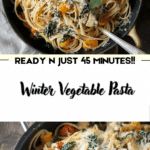 A hearty and healthy Winter Vegetable Pasta featuring roasted root vegetables, tossed with pasta and a light olive oil and garlic sauce. It’s a comforting vegetarian meal perfect for cold days.