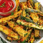 Freezing: Arrange the coated zucchini sticks on a parchment‑lined baking sheet and freeze until solid, then transfer to a freezer bag. Bake from frozen until hot and crispy (rather than thawing, which can make them mushy).