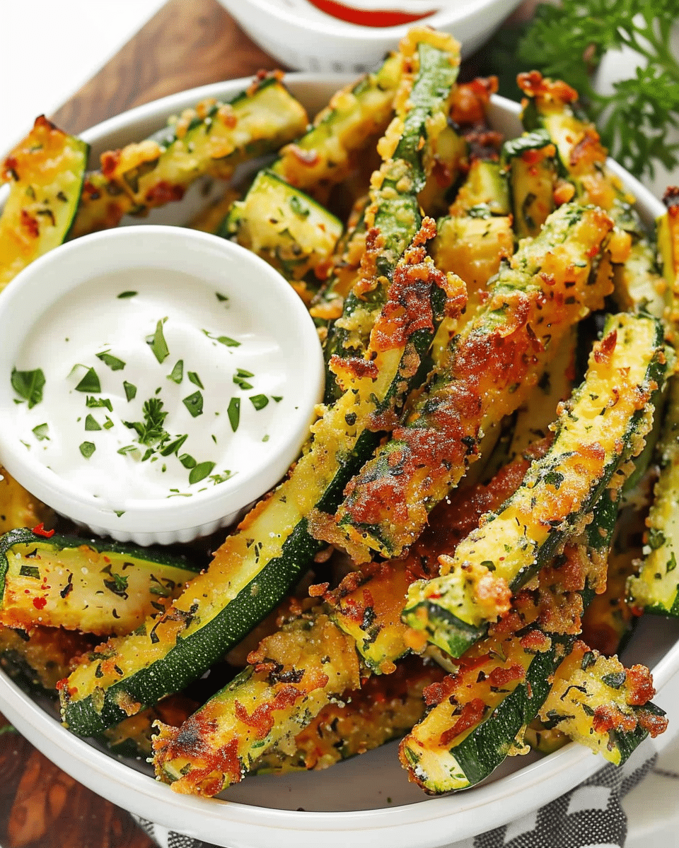 Several tips: use small zucchini, pat dry the sticks, space them apart on the baking sheet (don’t overcrowd), consider baking on a rack over a sheet for better airflow, and finish under the broiler or air fryer for extra browning.